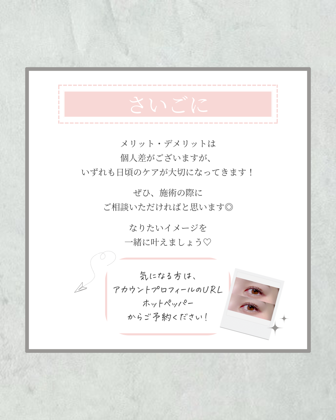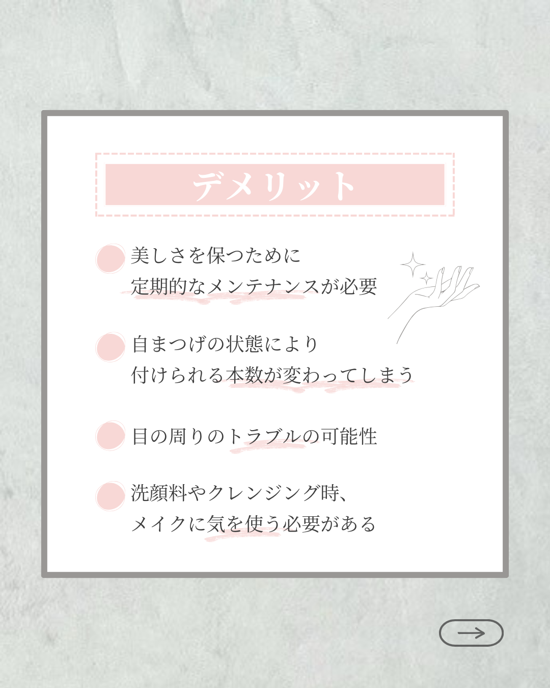 マツエクのメリットとデメリットについて、指定の文章を分かりやすく配置