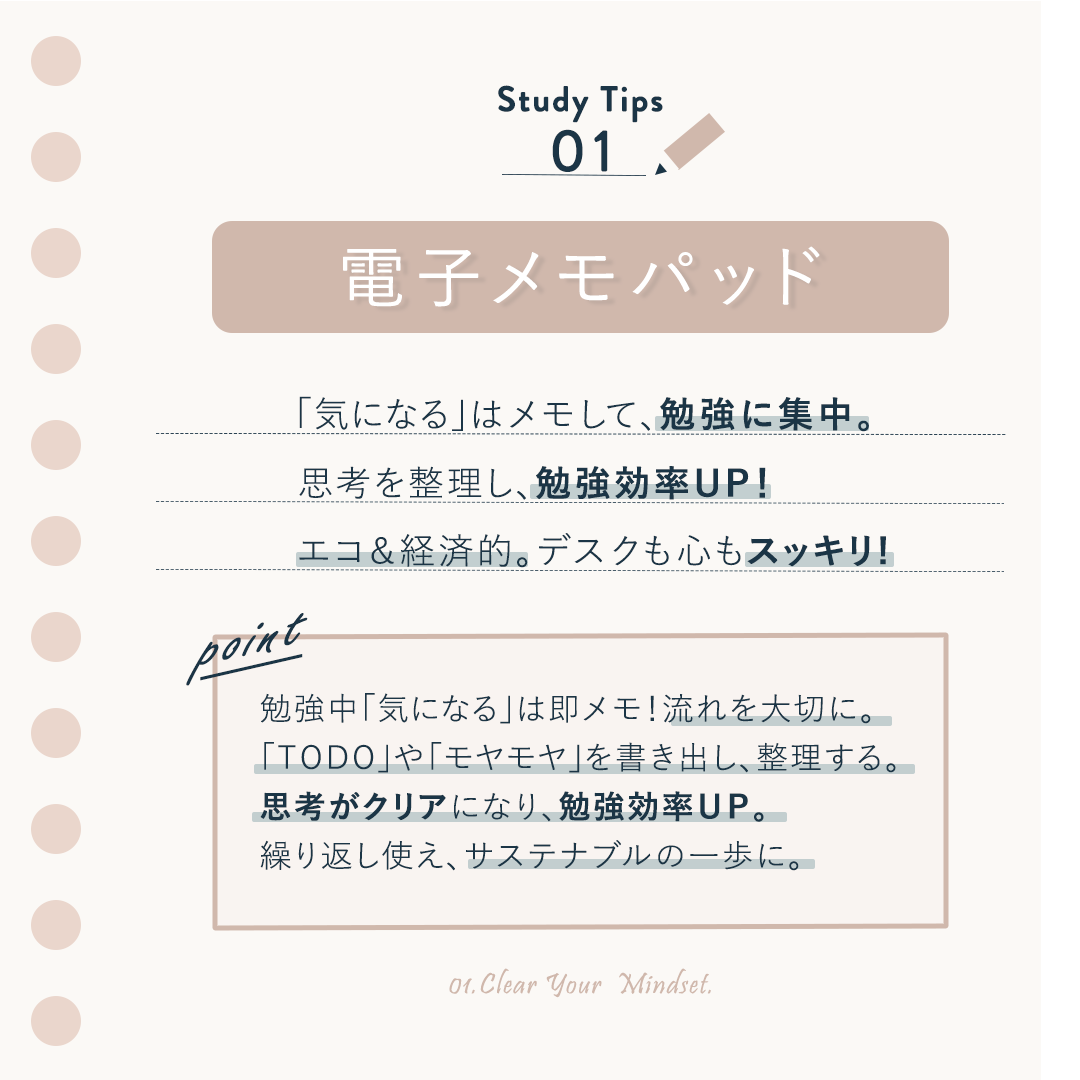 ①メモパッド…思考を整理しつつ効率を上げる、