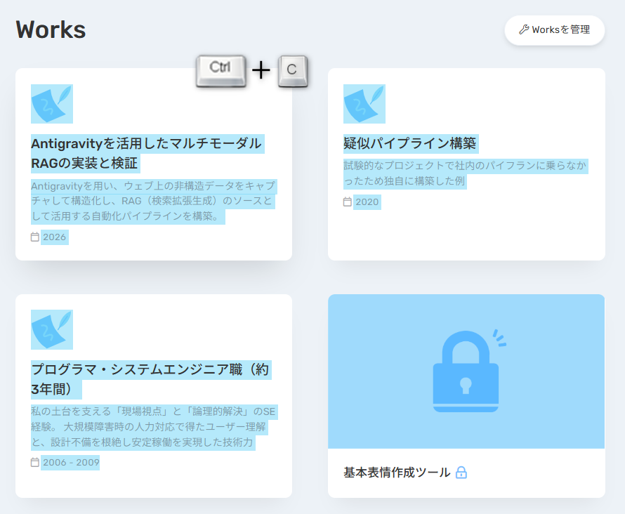 AIとの協働(Prompt Engineering): 複雑な正規表現やクリップボードAPIの制御ロジックを、AIへの的確な指示(プロンプト)によって生成。
