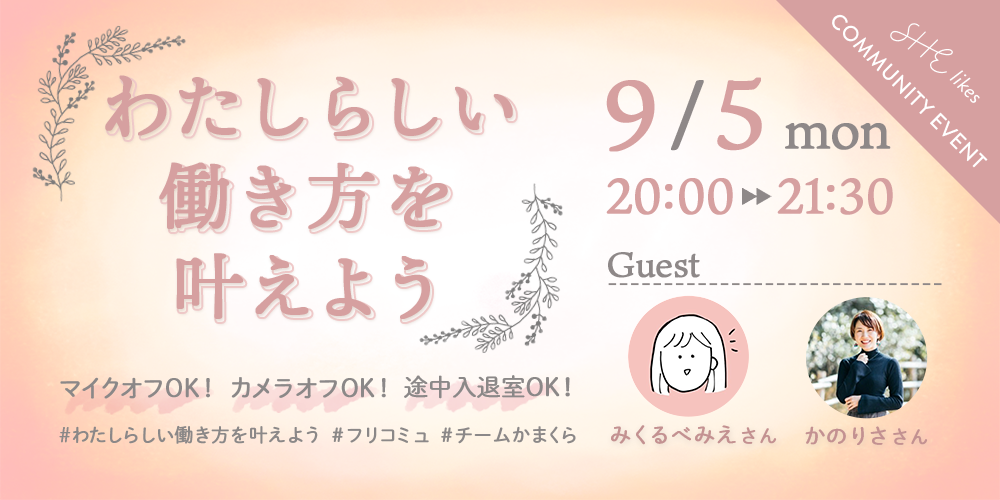 SHE likesにはフリーランスになった方、目指す方がいるが本当にフリーランスとして働けるか不安に思っている方も多く、そんな方に未経験からフリーランスとして成功されている方のお話しを聞く機会をつくるため。