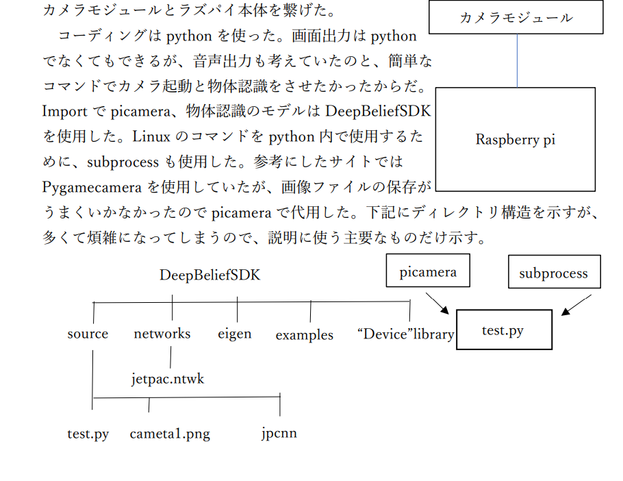 私自身が良く忘れ物をするので、忘れ物を防止する装置を作ろうと考えた。そこで、持ち物を確認する機能として物体認識が挙げられた。出力を音声にしようと考えていたが、うまくいかず断念した。