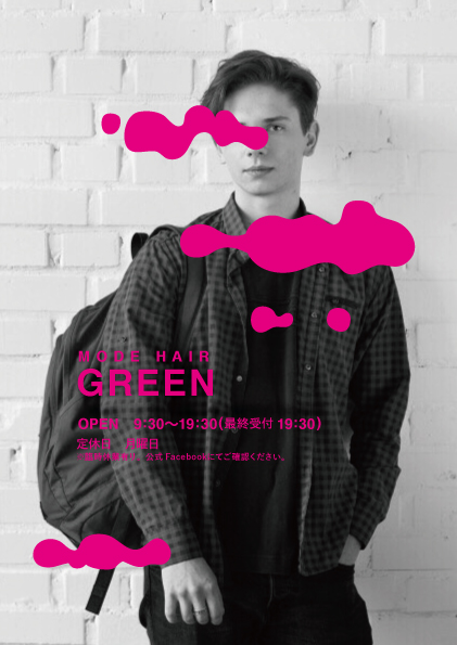 理髪店のフライヤー ハレノヒ / hare no hi. MD OVERVIEW 理髪店のフライヤーを制作した。「予算を抑えたい」という要望があったため、A4片面のみで制作した。 YEAR 2018 - 2018 ターゲット:男性(学生〜)押したいポイント:①新サービス「ちょい足しパーマ」②学割模索①白黒のイメージにピンクの文字、好きなのですがターゲット・店のイメージに合わないのでやめました。模索②模索③