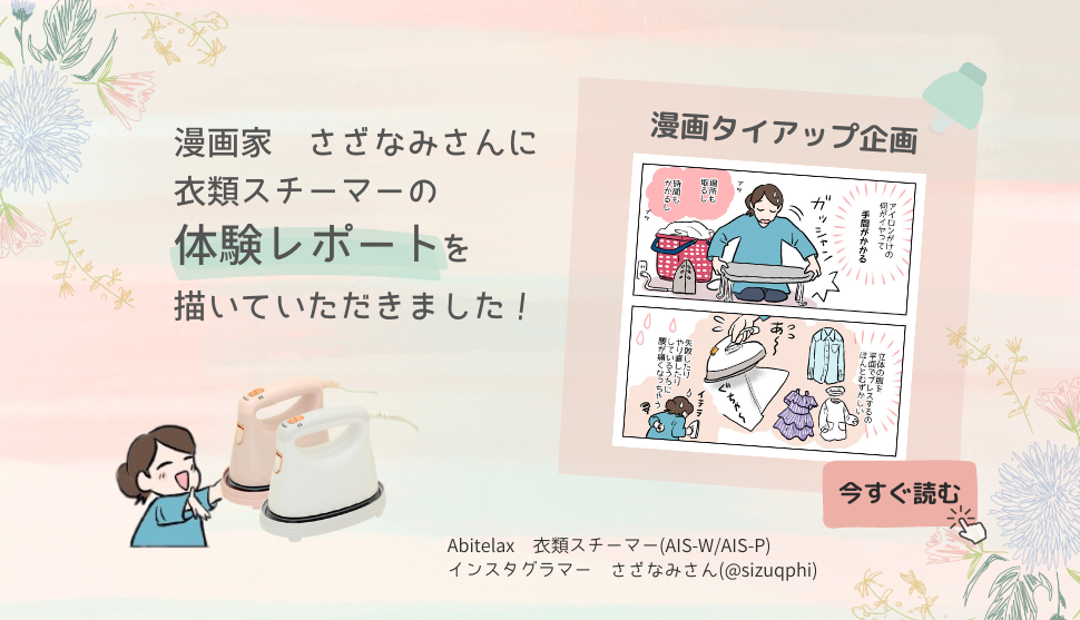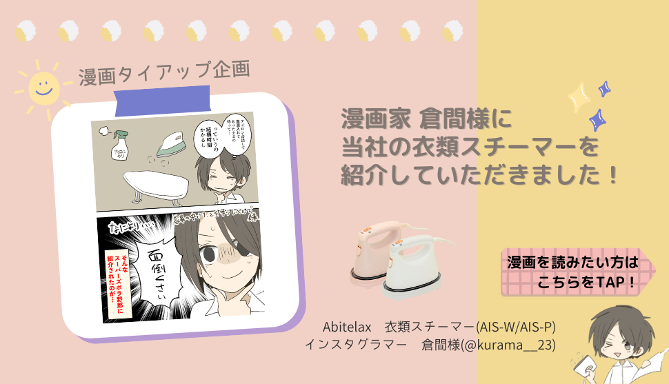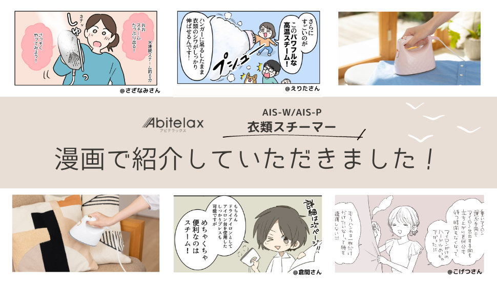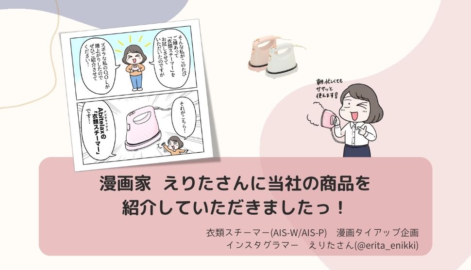 - 4名の漫画家さんに衣類スチーマーのレポートを描いていただいたことを告知すること