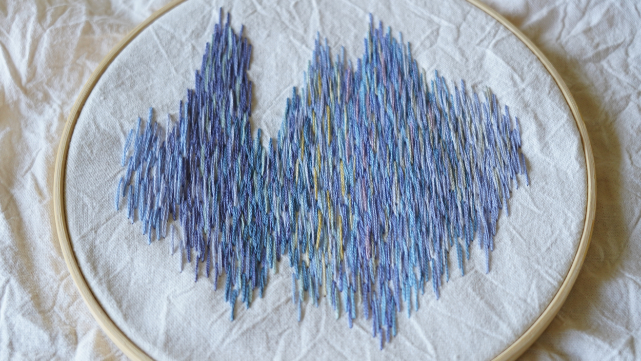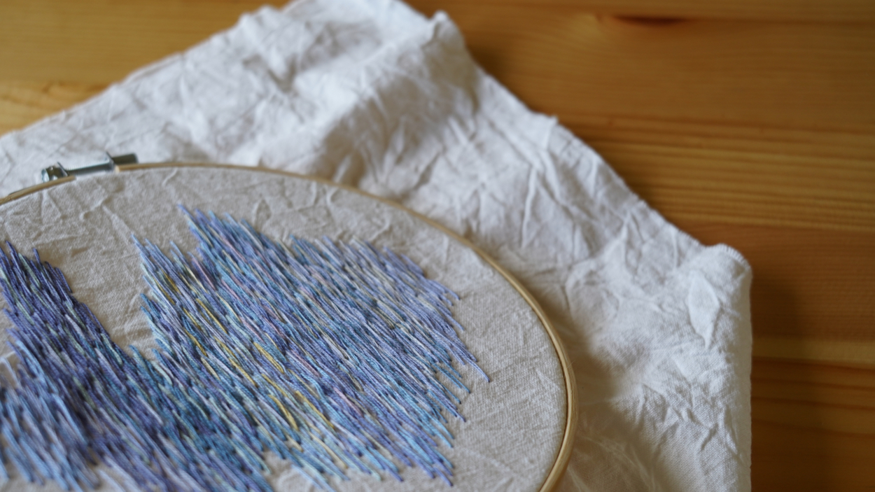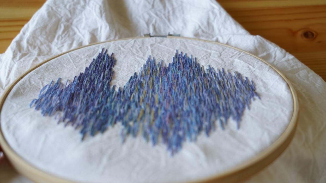 刺繍で波打ち際を表現しました。