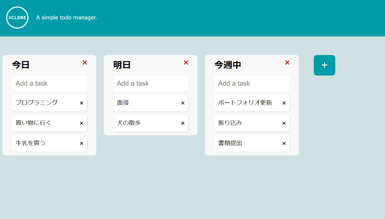 Todo管理アプリであるTrelloのクローンアプリです。サービス名は架空です。