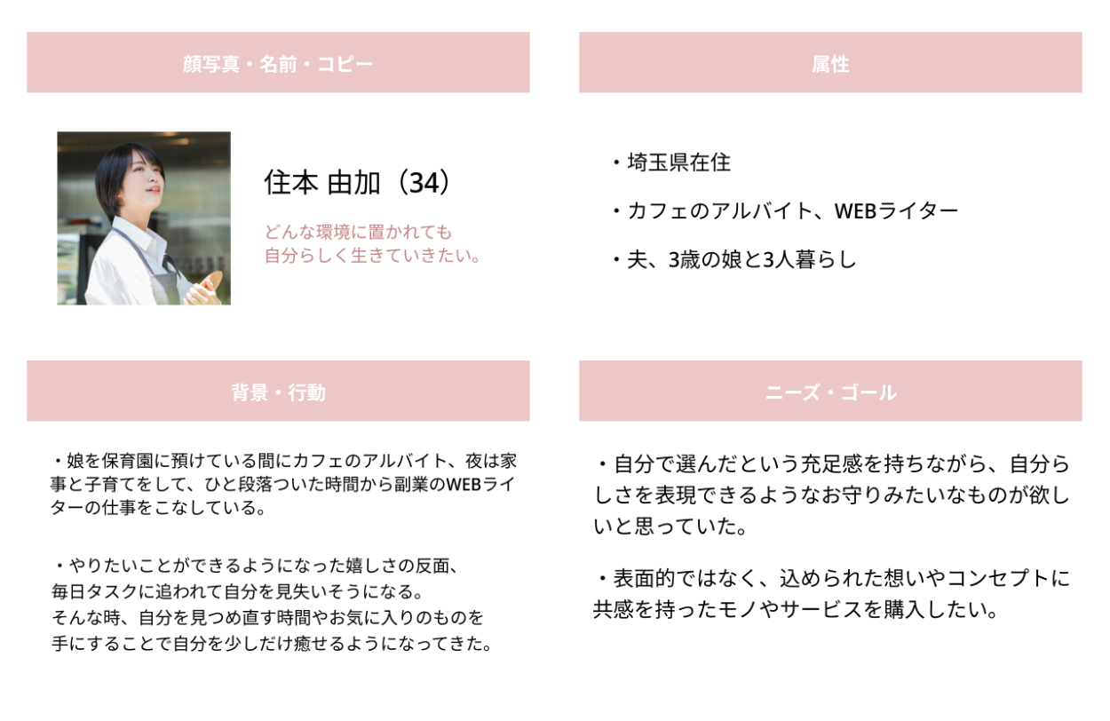 ・「Item」は筆記体フォントを使用し、少し薄めの色を使うことで「あしらい感」が出るようにしました。(メインはItemの下のタイトルのため)
