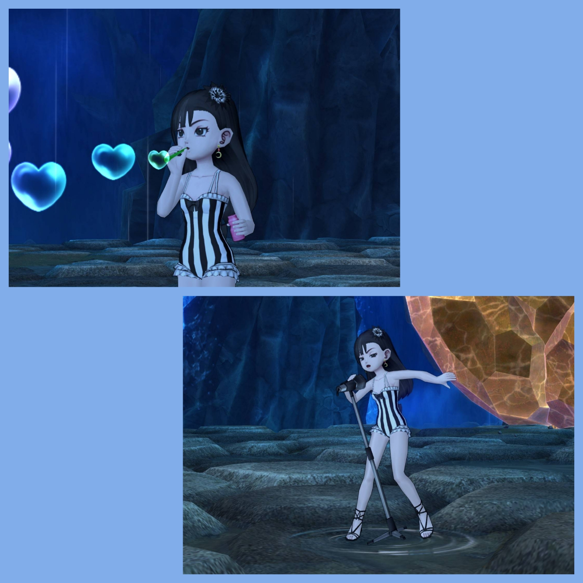 ロックンロールを歌う黒水着のルビー髪型の女の子^^
