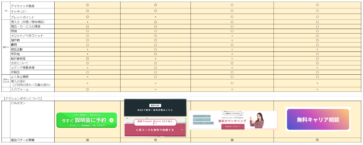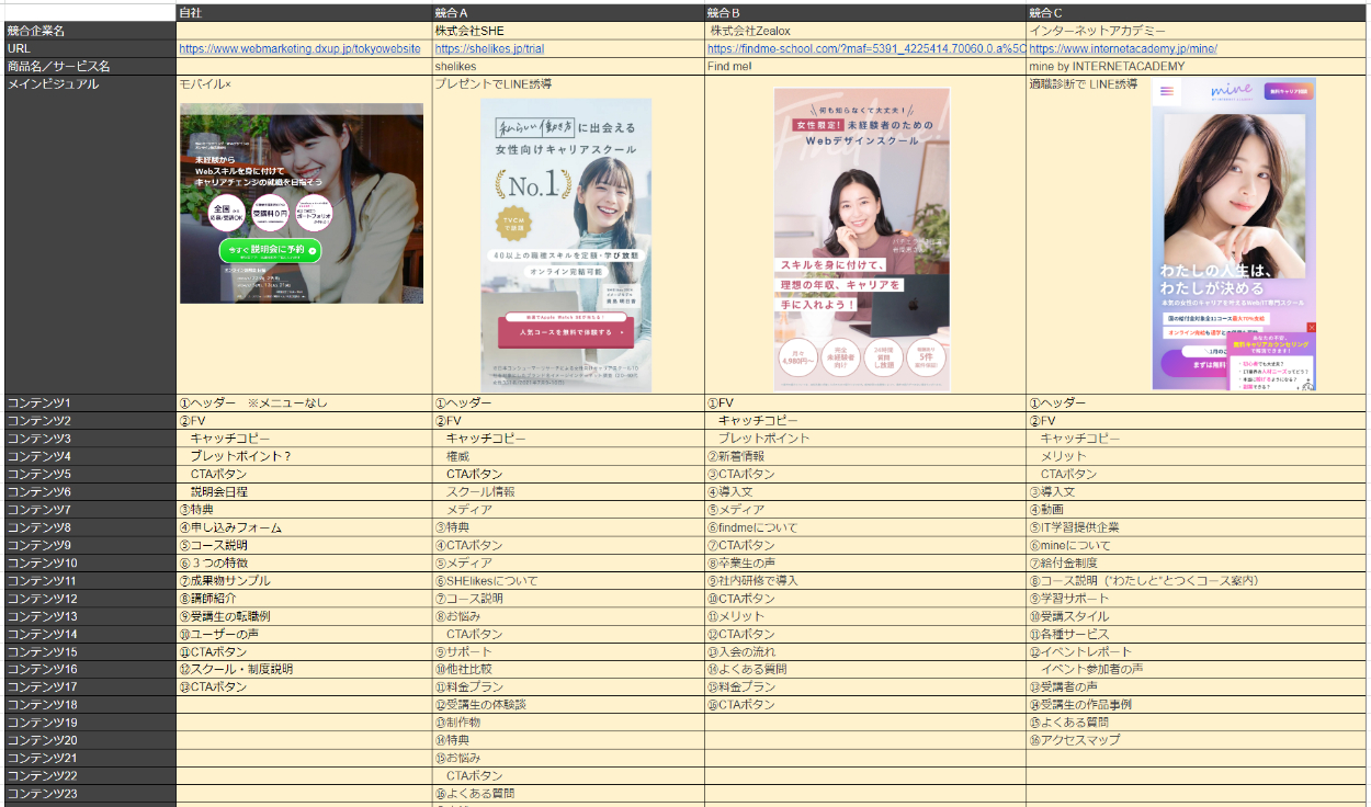 ②競合他社のLPをリサーチ(コンテンツ・デザイン等)