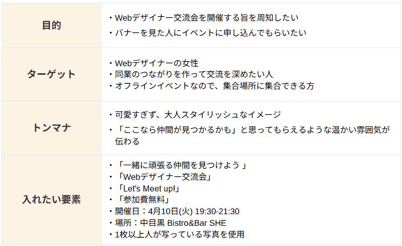 ・情報の優先度を意識しましたが、講師からのフィードバックで「例えば、開催日時の中でもジャンプ率をつけることでさらにメリハリがでる」とのコメントをいただきました。私は、「メインで目立たせたい情報」と「その他の情報」でしか優先順位を決められていなかったことに気づきました。一つの文章や、同じ要素内でも優先順位をつけてあげることで、より目的の達成に近づくデザインができあがるのだと学びました。今後は、情報のメリハリも意識したデザイン制作をしていきたいと思いました。