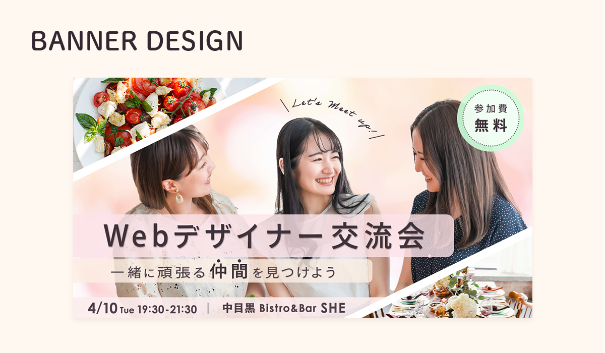 ・女性らしい雰囲気を出すため、ペールトーンのオレンジとピンクをベースに使用しました。また、暖色にすることで温かな雰囲気で交流会が行われていることも表しています。