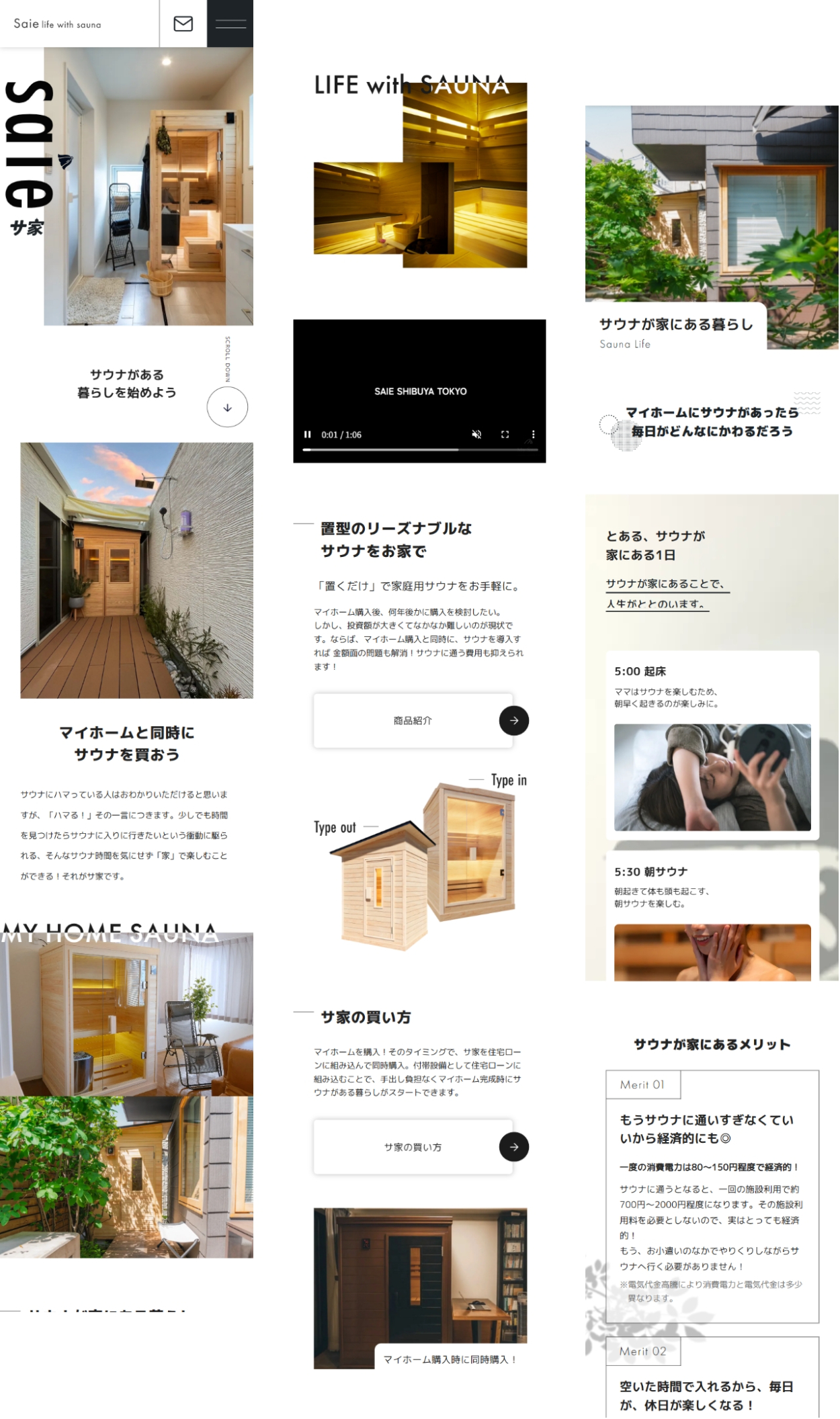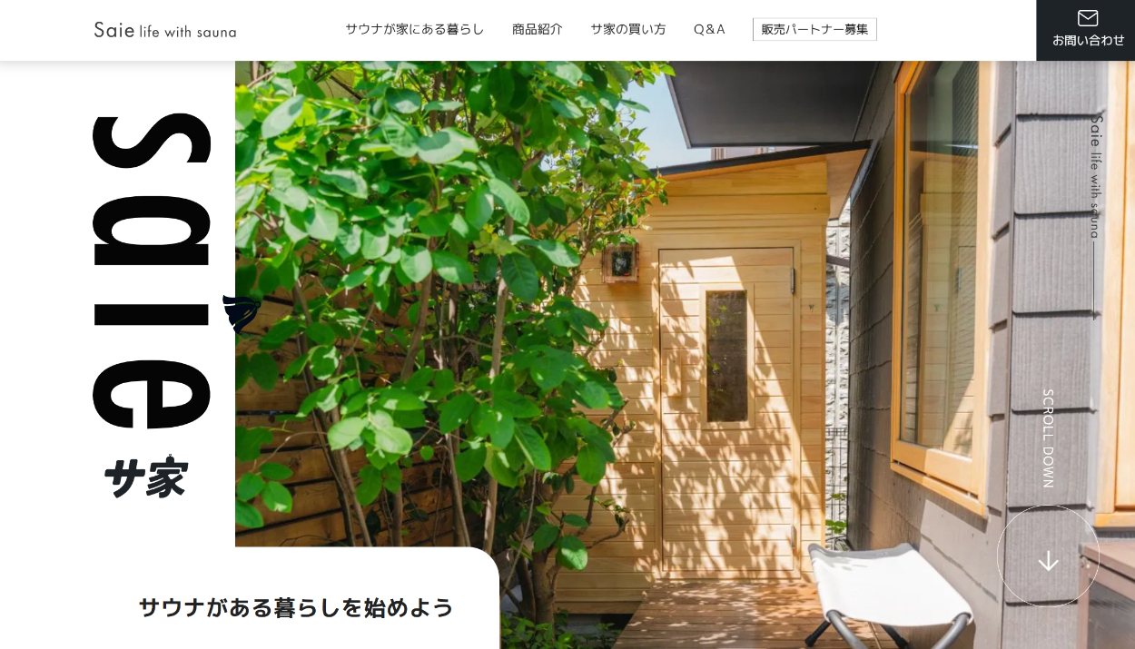 saie -サ家- WME DESIGN WEBデザイナー/エンジニア OVERVIEW サウナ×注文住宅のサービスサイトのデザインを担当。写真を活かしたシンプルモダンなサイト。 YEAR 2024 WEBSITE