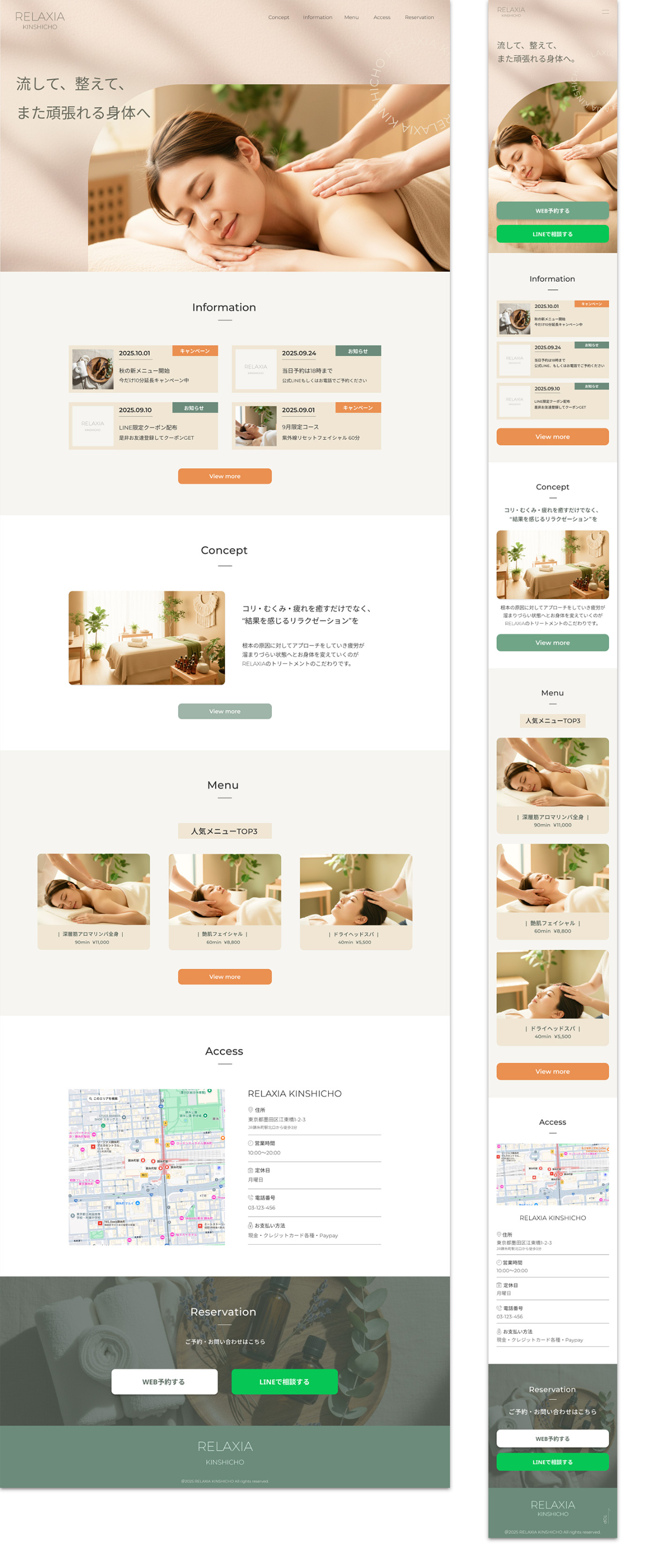 スマホ版ではFVに予約ボタン、LINEに促すボタンを設置し行動を促す設計にしました。
