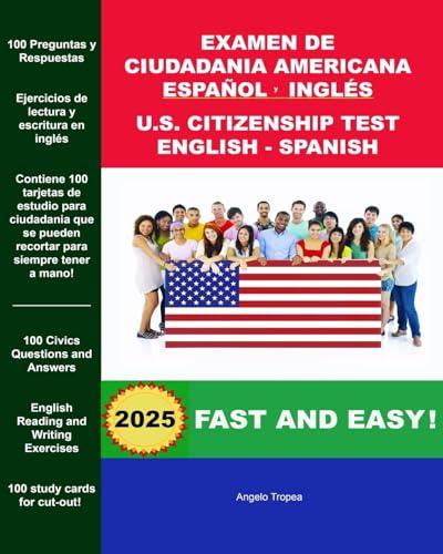 Get Ready to Ace Your Citizenship Test with 2025! SPANISH-ENGLISH Book - The Ultimate Guide to Passing the Civics Test!- Gain confidence and prepare for the citizenship test with our QUIZ-STYLE method of memorizing the 100 official civics questions and answers.- Take your learning on-the-go with the included cut-out civics cards, perfect for studying anytime, anywhere.- Experience multiple learning styles with the questions and answers presented in three different ways - Simple Question/Answer Style, Quiz Style, and CIVICS CARDS.- Learn essential reading and writing skills with exercises and practice sentences.- Master the official words you must know how to read and write with complete lists provided in the book.- Discover helpful web addresses and a list of all 50 states and their capitals, all included in the book.This comprehensive guide is the perfect tool for anyone preparing for the citizenship test. Get it now and get ready to ace your test - fast and easy!