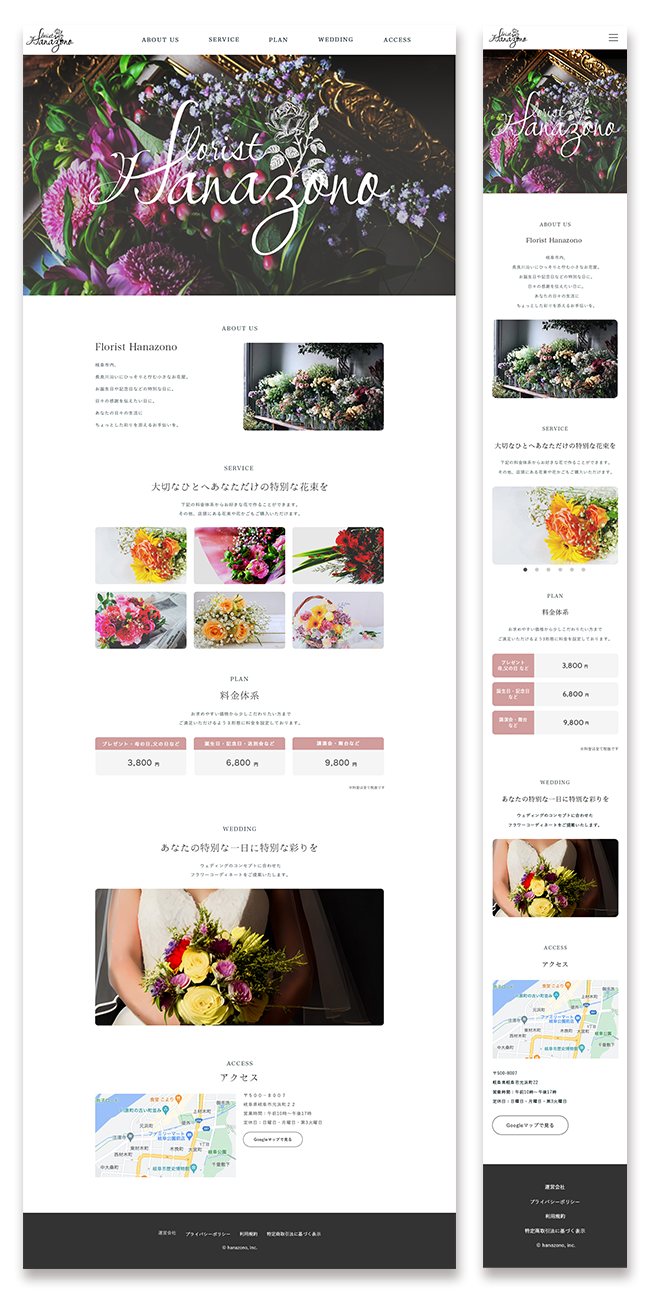 ▷▶︎ お花屋のLPデザイン・コーディング [Photoshop・Atom(HTML/CSS/jQuery)使用] 制作期間:1ヶ月間(情報設計、WF、デザインカンプ、コーディング、実装)