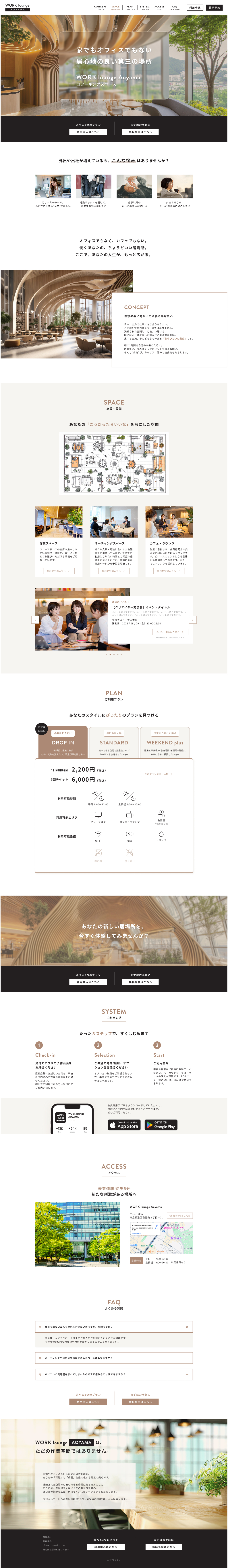 LP全体で目指す「上質な空間」を表現すべく、ファーストビューでは情報量を最小限に抑え、コアメッセージと行動喚起のみに絞りました。