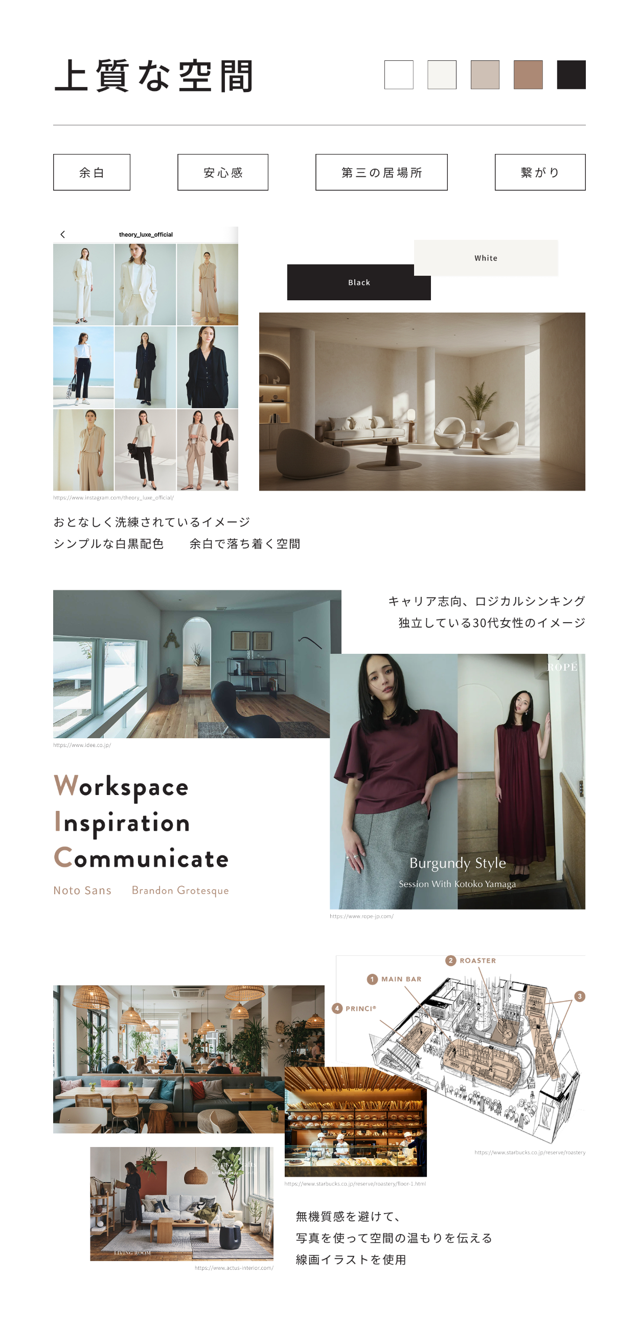 LPのコンセプトやキーワードを選定し、世界観をビジュアルに表現することで、トーン&マナーを整理しました。