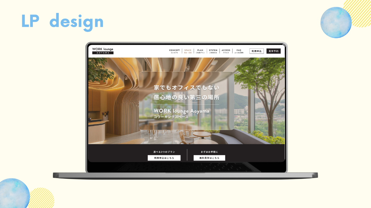 「SHElikes PRO デザイナー」にて、LPデザイン課題に取り組みました。架空クライアントの依頼内容をもとにヒヤリングシート作成、ストーリー設計、内容構成、デザインカンプとSP版ワイヤーフレームを制作しました。( デザインツール:Figma|制作期間:2週間 )