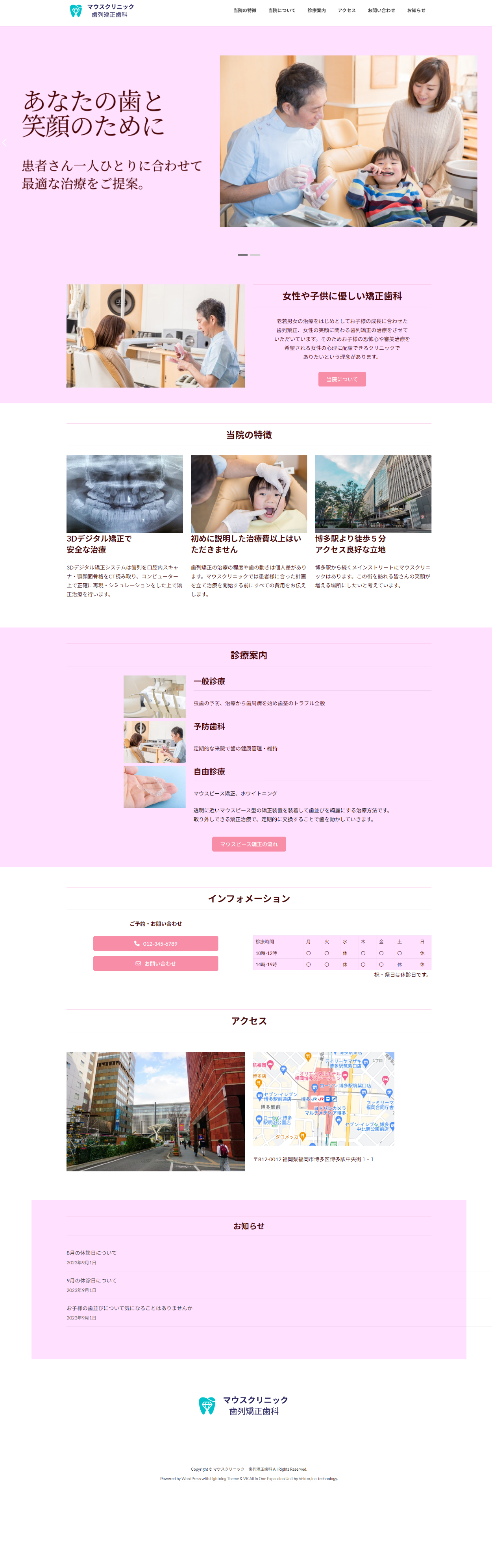 Wordpressを使用して架空の歯科サイトを制作しました。