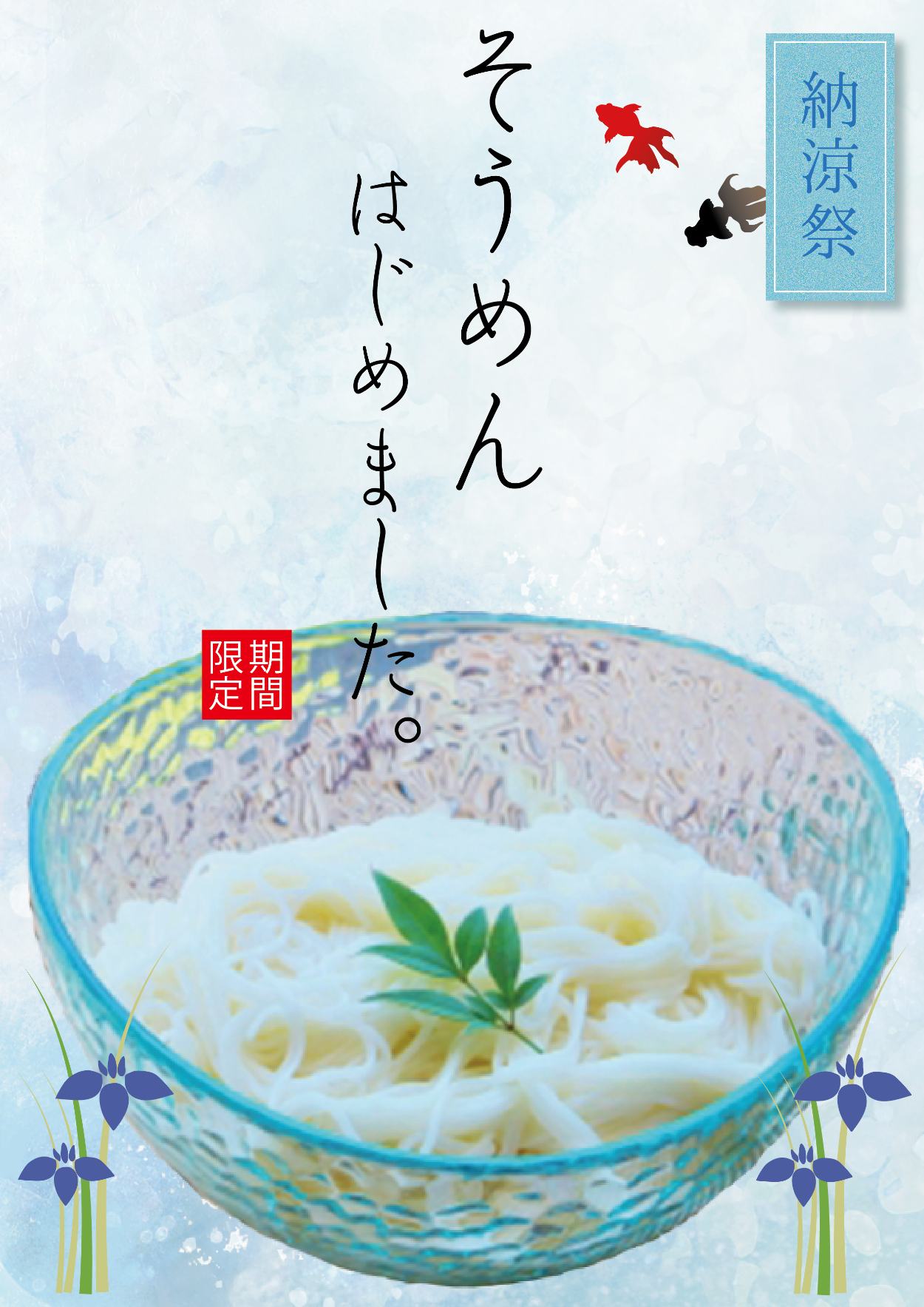 フォントをそうめんのような感じに筆記体にした。「始めました」を漢字ではなく、ひらがなにすることで柔らかい感じを出しました。