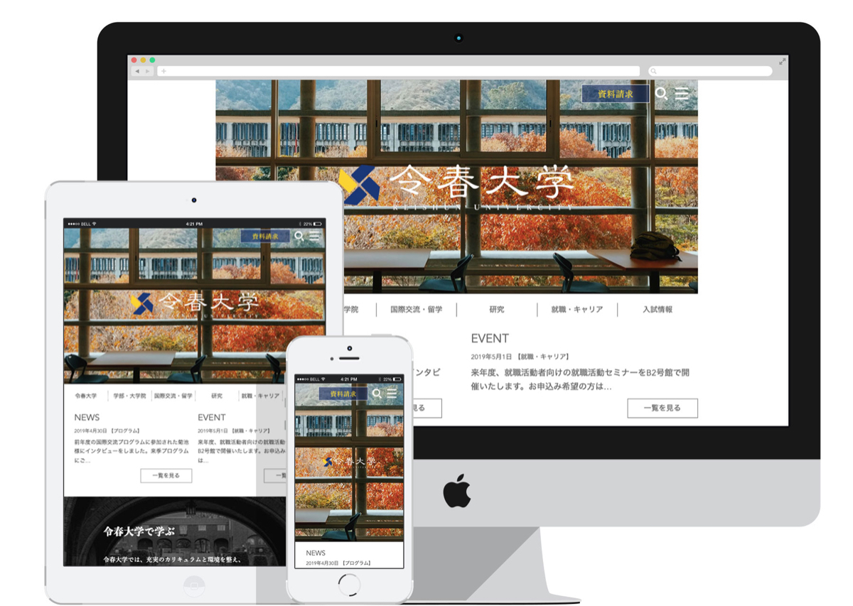 - 勉強がしやすい落ち着いた雰囲気を感じてもらうため、キャンパス内の自然がよくわかるような写真選びをしました。