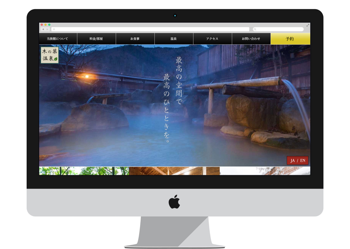 - 旅館の「和」の雰囲気をWebサイト上で演出するために、背景に和紙のテクスチャを使用しました。