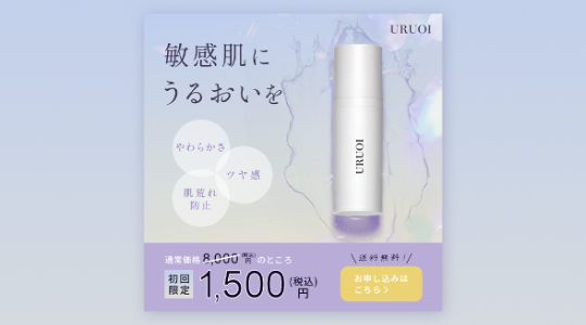 - 商品が目に止まりやすく、何の広告か一目で分かるような写真のトリミングがされている