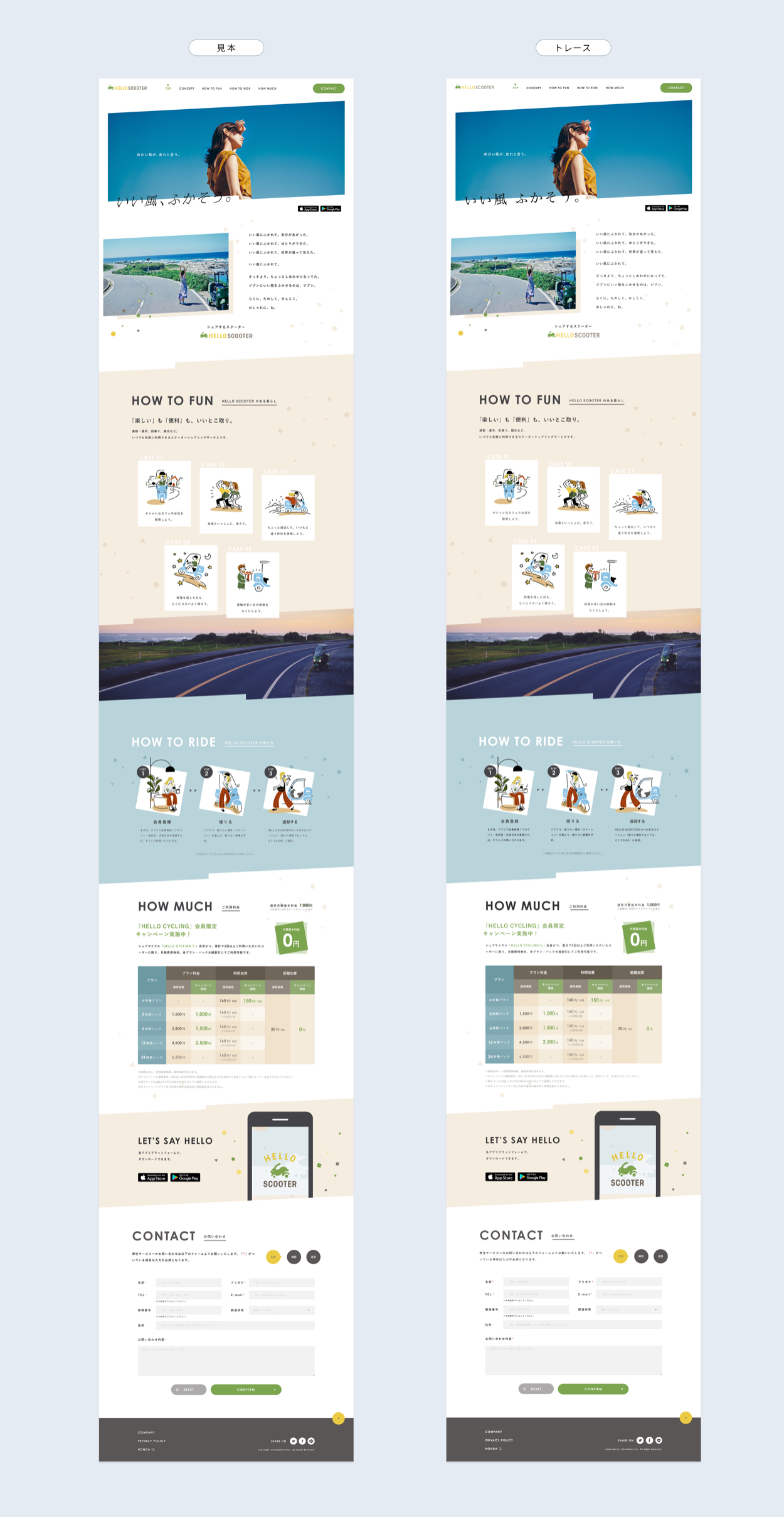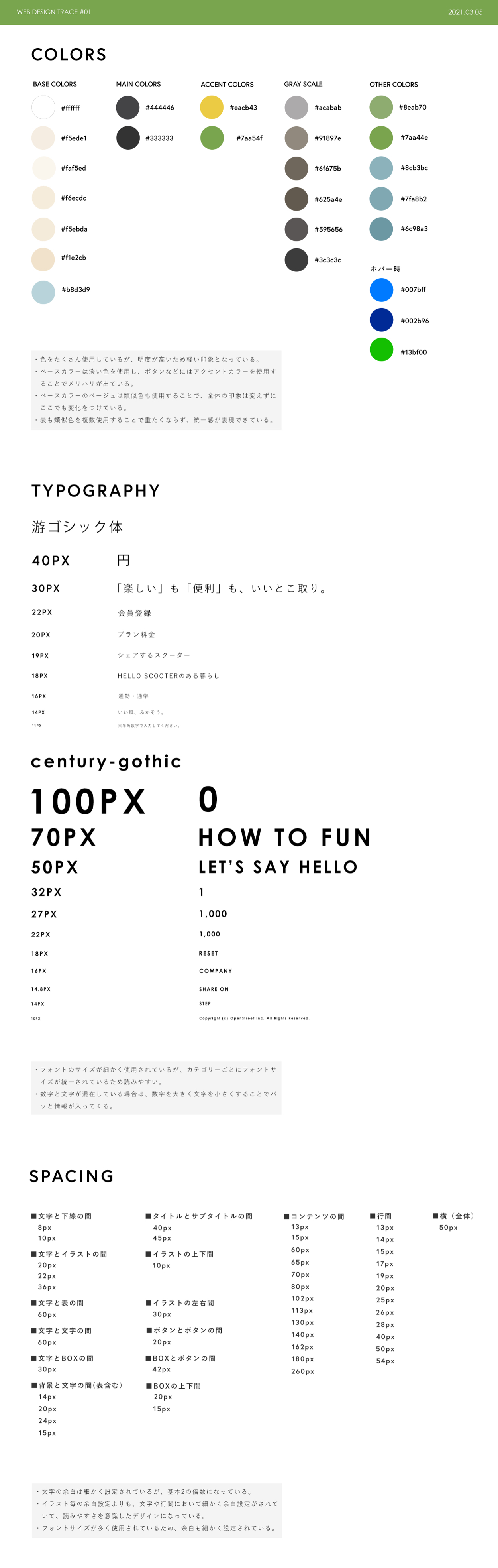 使用しているカラーやフォントサイズの種類が多くても纏まったデザインになっているのは、近接・整列・反復・コントラストがおさえられているためだと分かりました。またスタイルガイドの作成によって情報整理と分析ができ、トレースで得た知識を改めてインプットするために必要な工程だと感じました。