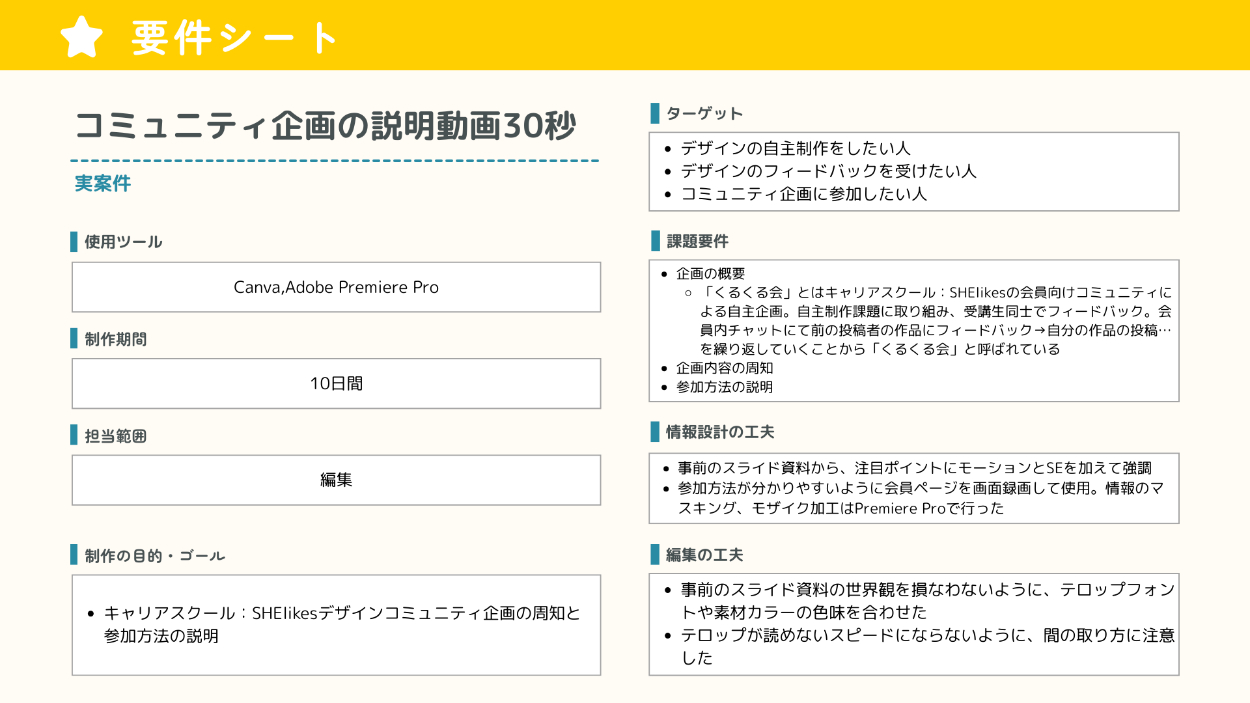 キャリアスクールSHElikes受講生コミュニティ「デザインコミュニティ」にて、企画説明動画を作成しました。2025.8