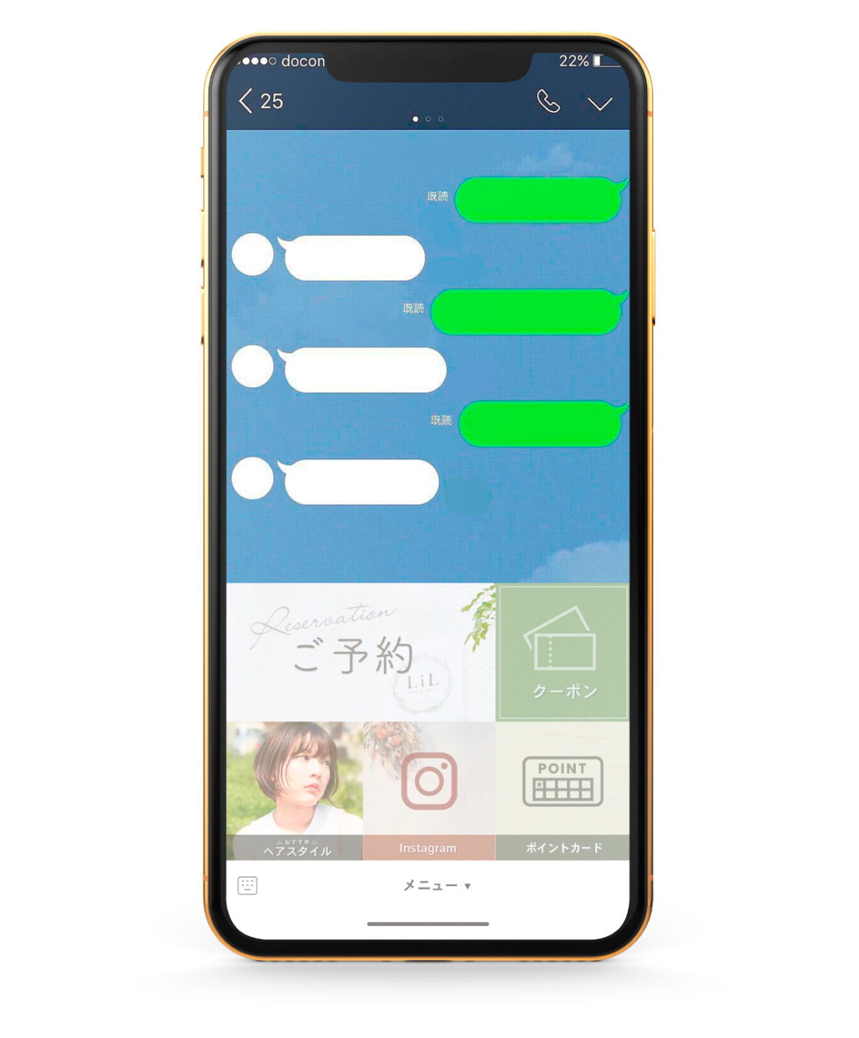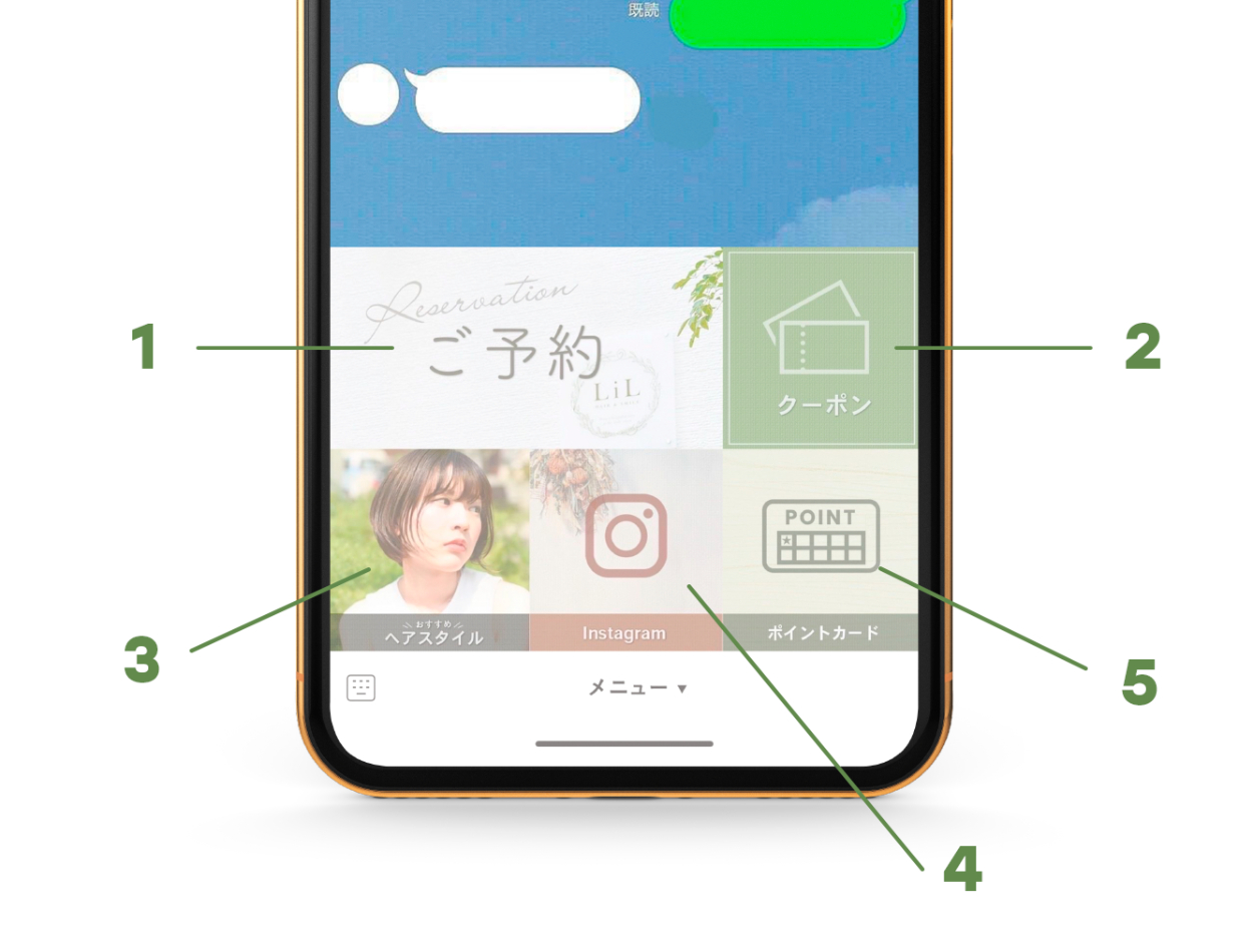 徳島県の美容室、Lil hair様のLINEのリッチメニュー作成を行いました。 目的は新規顧客のリピート率アップ。 木目調のナチュラルなイメージの外観を持つ美容室。