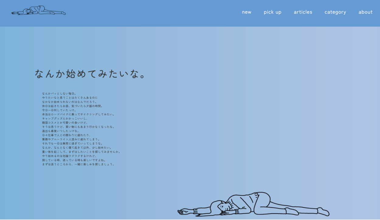 1.何かしたくても始められないな〜という方にきっかけを掴んでいただくことが主旨なので、やる気が漲るようなサイトというよりも、まあ見てみるか。あ、面白そうな記事だな。とハードルをあまりあげないようなロゴ、メインビジュアルとしました。サイトロゴ・MV画像はLinustockさまよりお借りしています。