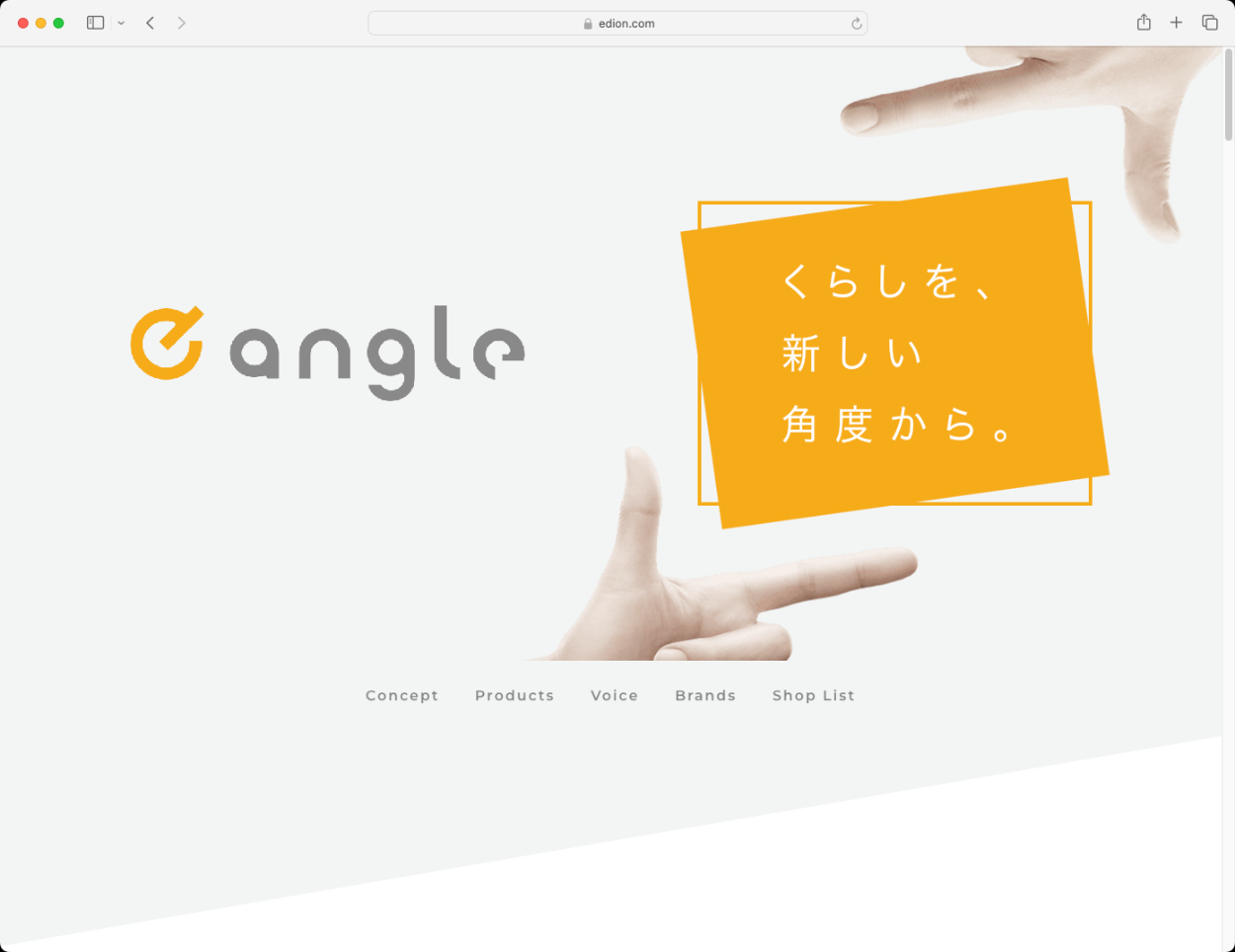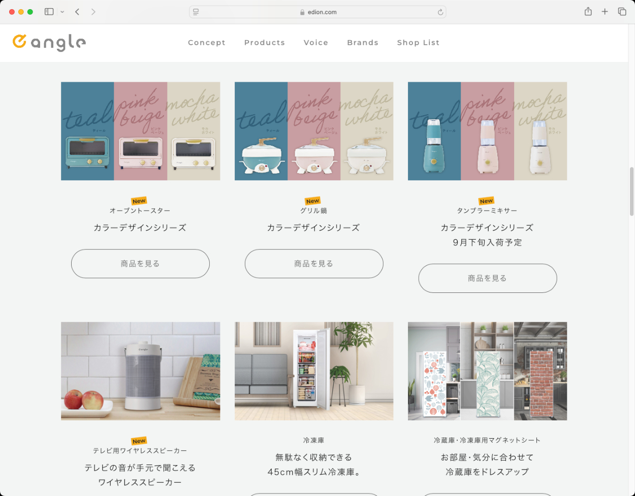 新しい視点・角度から企画された家電ブランドとして「e-angle」というネーミング。