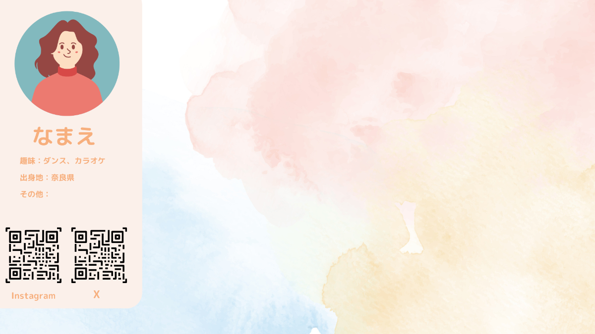 【架空】Zoom背景 Ayaka OVERVIEW 架空のZoom背景を作成しました。 YEAR 2024 ◎工夫した点コミュニティイベントでの使用を想定して制作しました。軽い自己紹介とSNSのQRコードを掲載することで興味を持った人がSNSを検索し繋がれるようになっております。背景の淡い色合いに合わせて自己紹介欄もトンマナをそろえています。