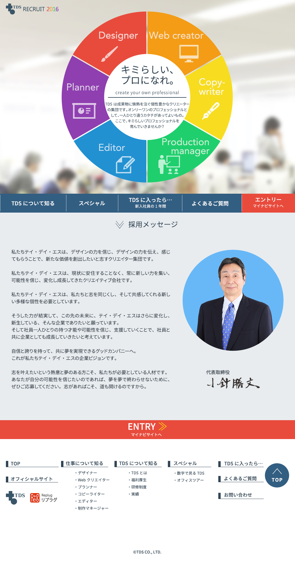 上部のナビゲーションだけではなく下部にも大きくエントリーへのリンクを設置し、エントリーしやすいようにする。