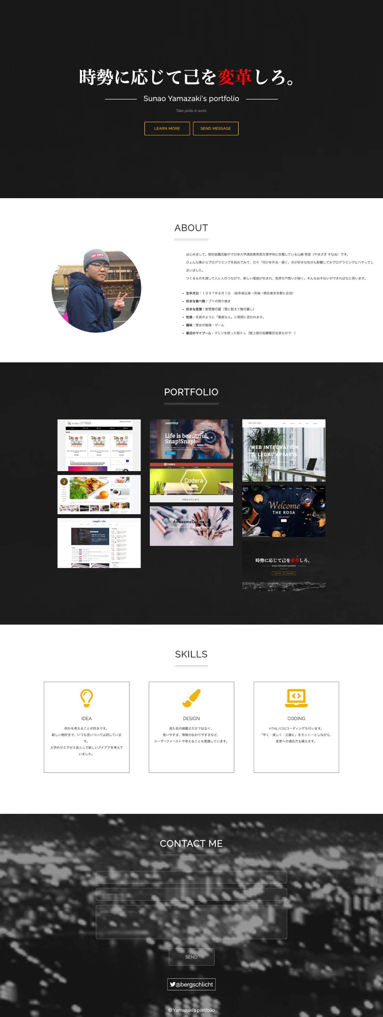 第一号の簡単なポートフォリオサイトを作ってみることを目標として制作しました。