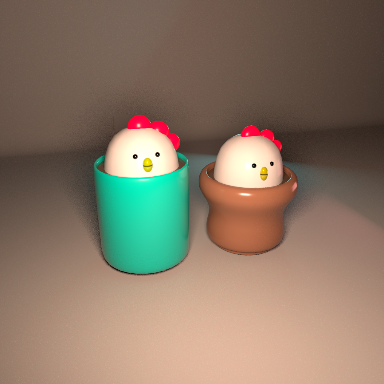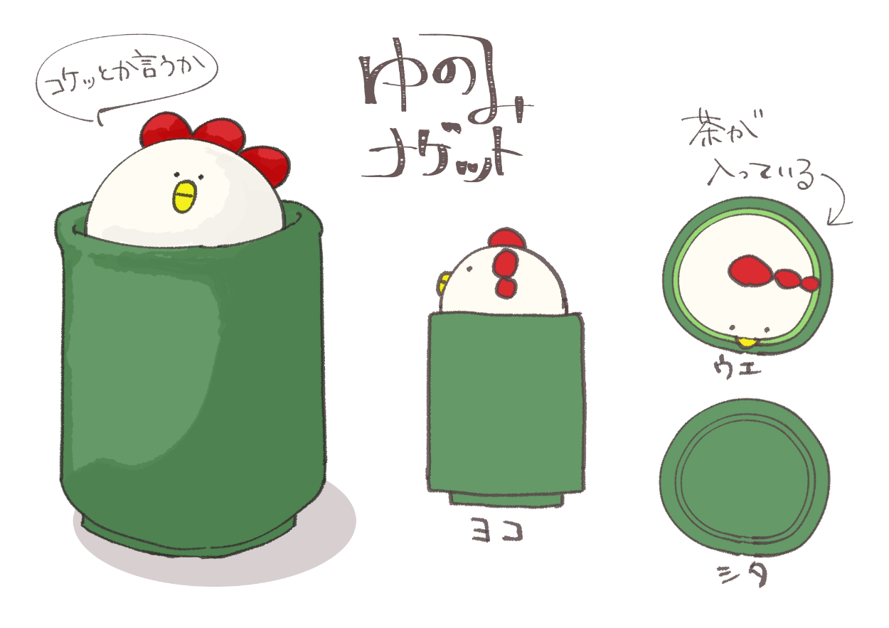 トサカは大中小と大きさが違います。湯吞みだけでなく、ワイングラスや空き缶などバリエーションを増やしたいです。写真右のナゲットは鉢植えをイメージしています。