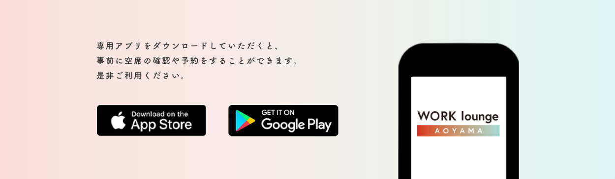 :WORK lounge AOYAMAに来てもらうために、アプリのダウンロードを促す。 - ビジネススクールWORK 非会員