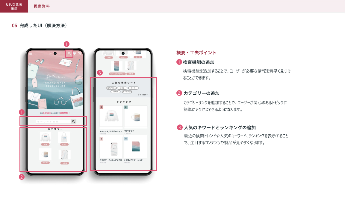 SHElikes MULTI CREATOR COURSEの課題⑥で、UI/UX改善提案課題に取り組みました。ペーパープロトタイプ、Figmaを使用したデザインカンプ、改善提案資料を作成しました。
