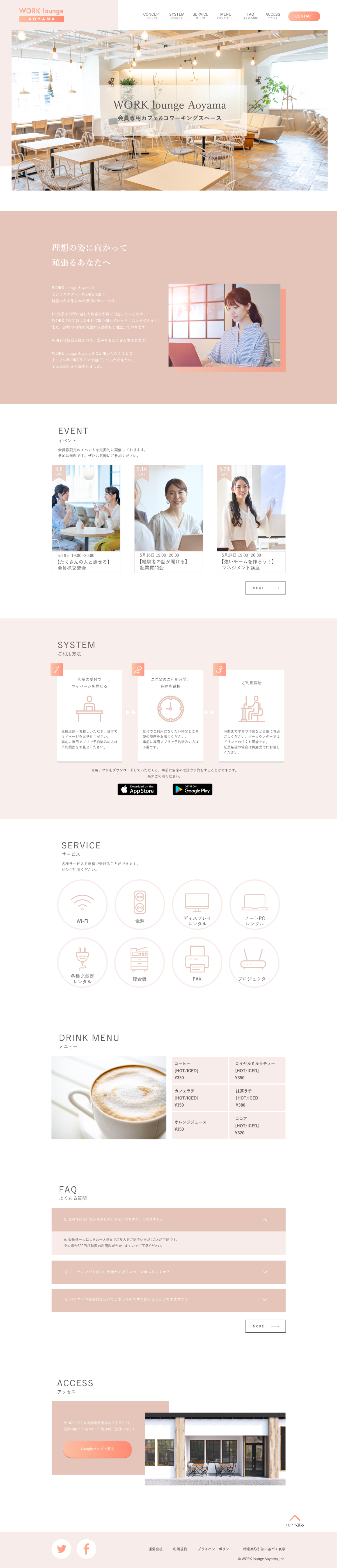 コワーキングスペースのWebサイトのデザインカンプを制作しました。