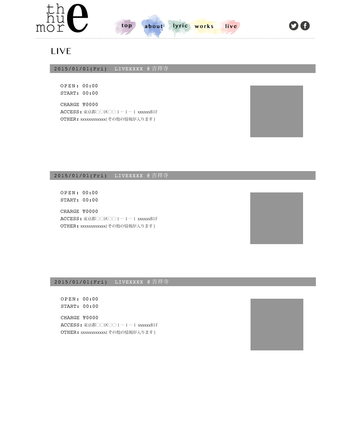 バンドサイト a.kazami Webディレクター、デザイナー OVERVIEW WEBスクールで勉強中に知り合いのバンドサイトを作成しました。 YEAR 2014 - 2014 WEBスクールに通っていた際に課題で作ったサイトのデザインです。