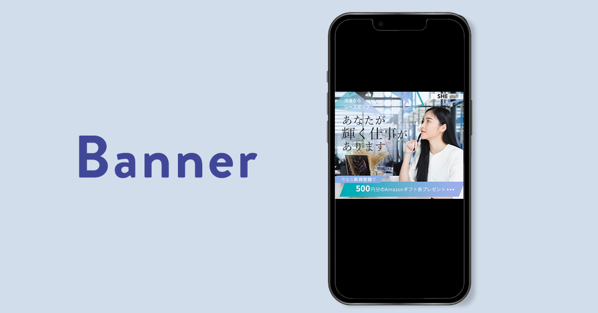 人材派遣会社の新規登録者を増やすためのバナー。Googleに出稿し、web上に掲載される想定。