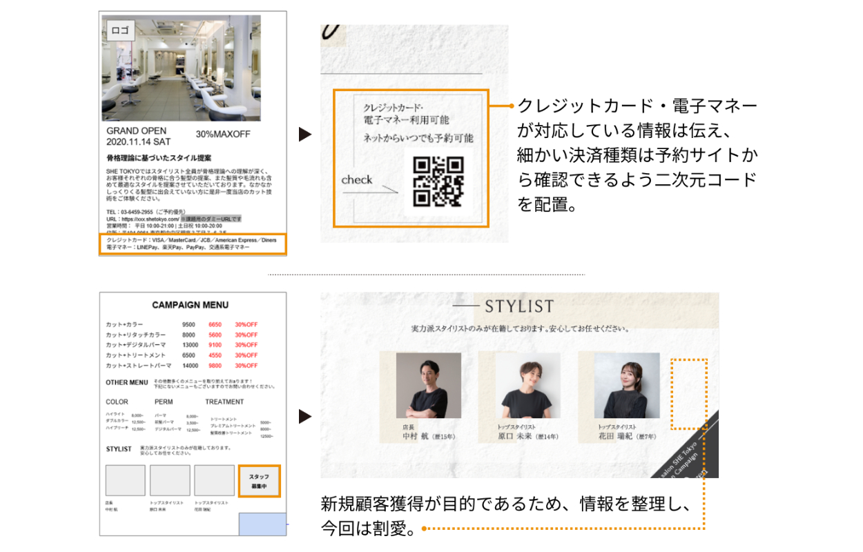 - チラシを切り取りは面倒と感じると思うため、1回で切り取りができたり、チラシをそのまま提示するようユーザーに促すようなデザインとしました。