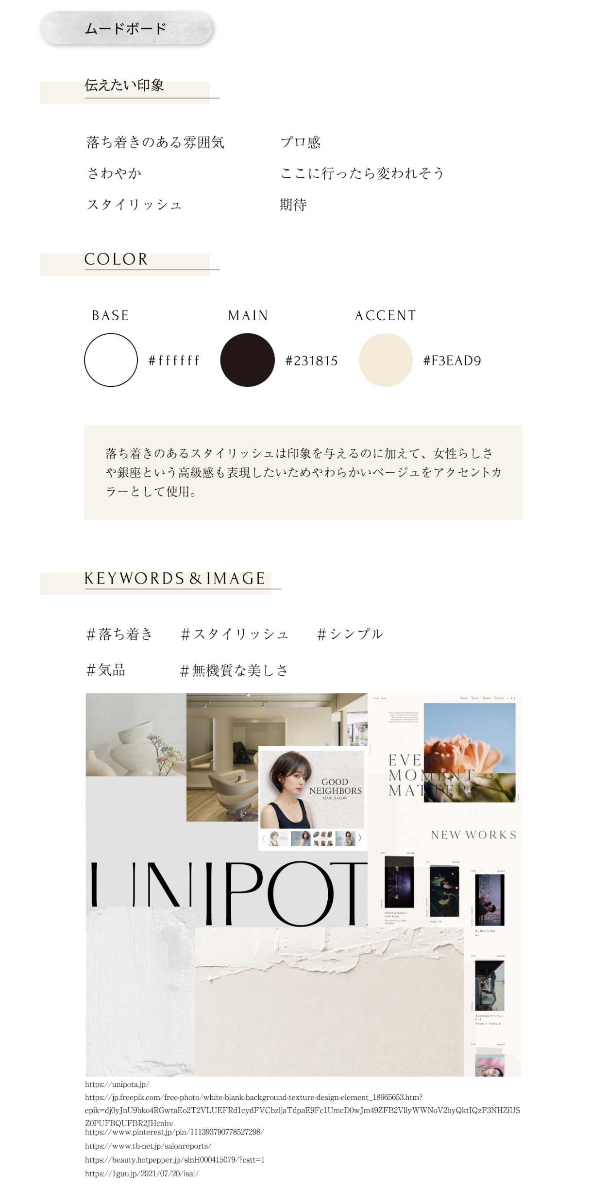 - 余白や細い線を多用し、上品さやプロ感が出るように表現しました。