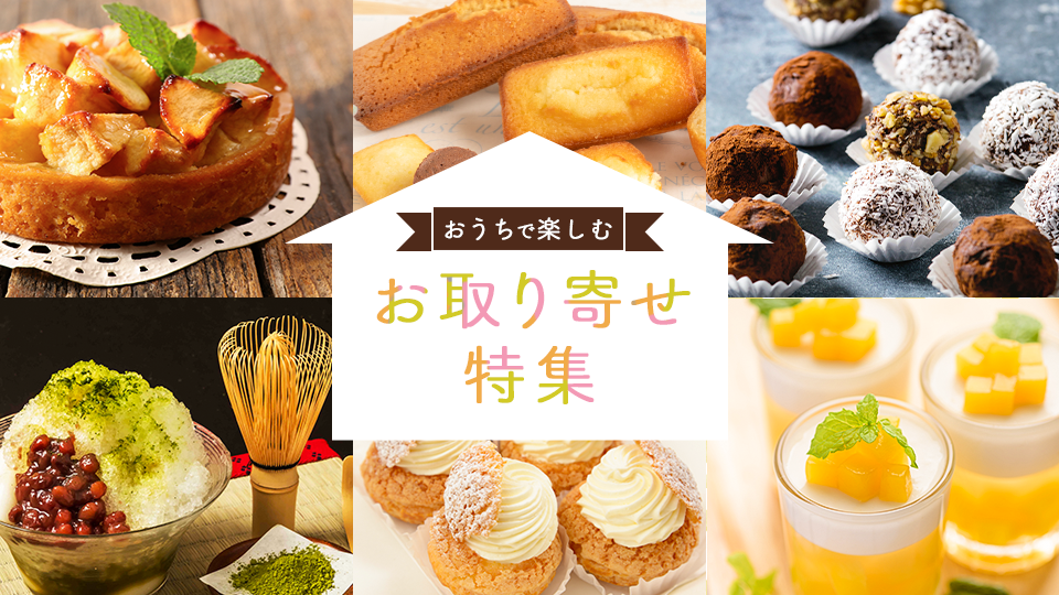 - 「おうちで楽しむお取り寄せ特集」という指定コピーに合わせて、バナーの中心に家モチーフのあしらいを制作・設置しました