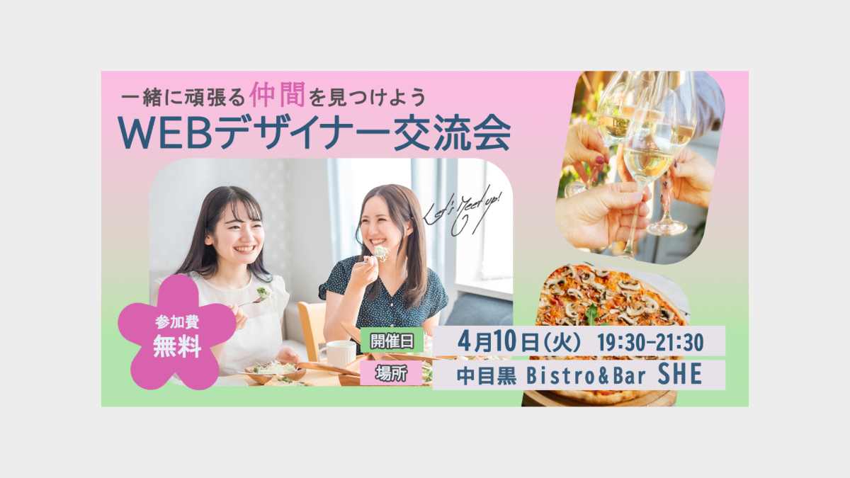 本バナーは、Webデザイナー同士が気軽に交流できる「WEBデザイナー交流会」の告知を目的に制作しました。