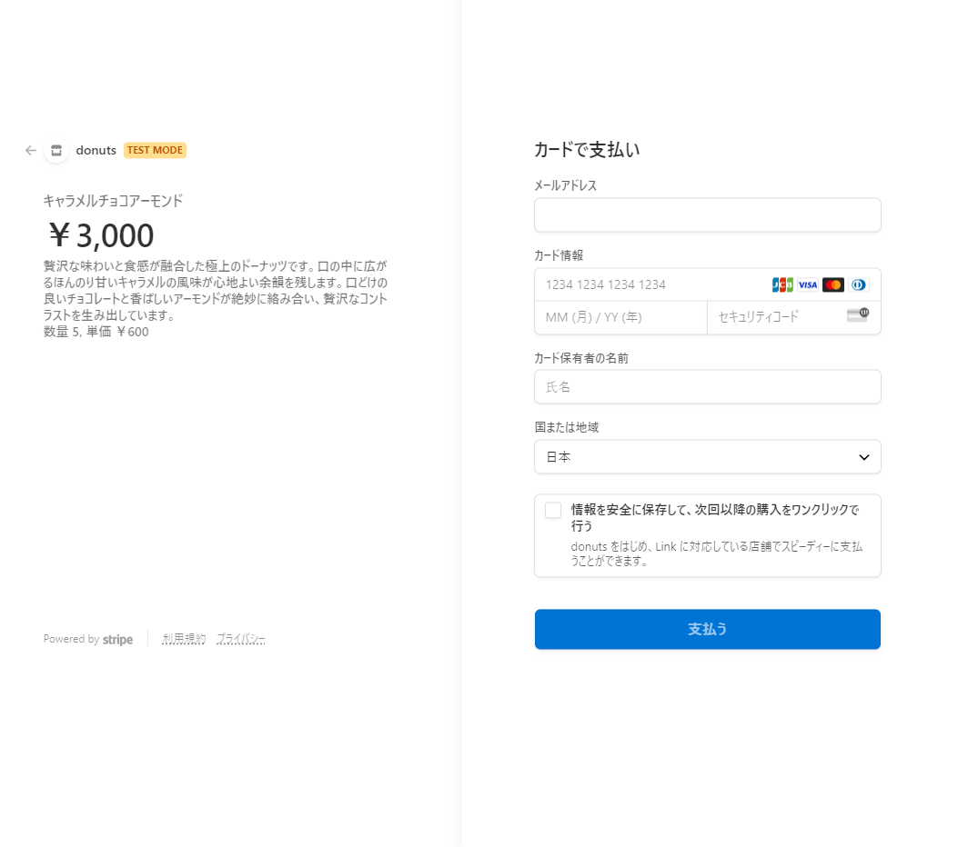 カード情報:4242 4242 4242 4242