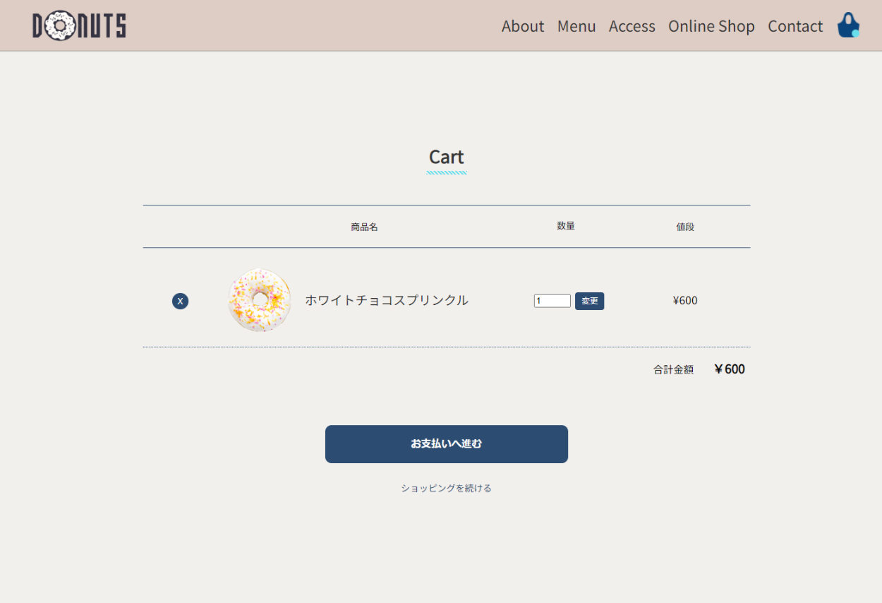 また、数量を変更すると画面遷移なしで値段と合計金額が更新されます。