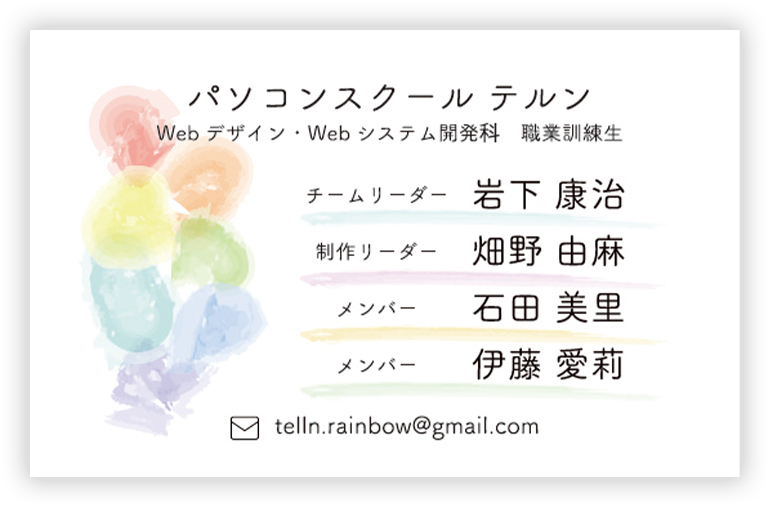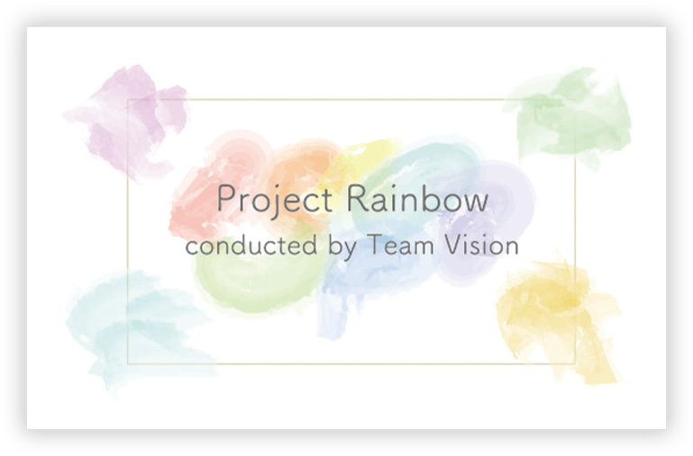 ・表のメンバーの名前の左側に虹色を配置しているのは、にじ様と一緒に考え、相談を重ねながら、共にサイトを作り上げていくという意味を込めています。メンバーそれぞれのアンダーラインの色は、裏面の端の4色とリンクしています。