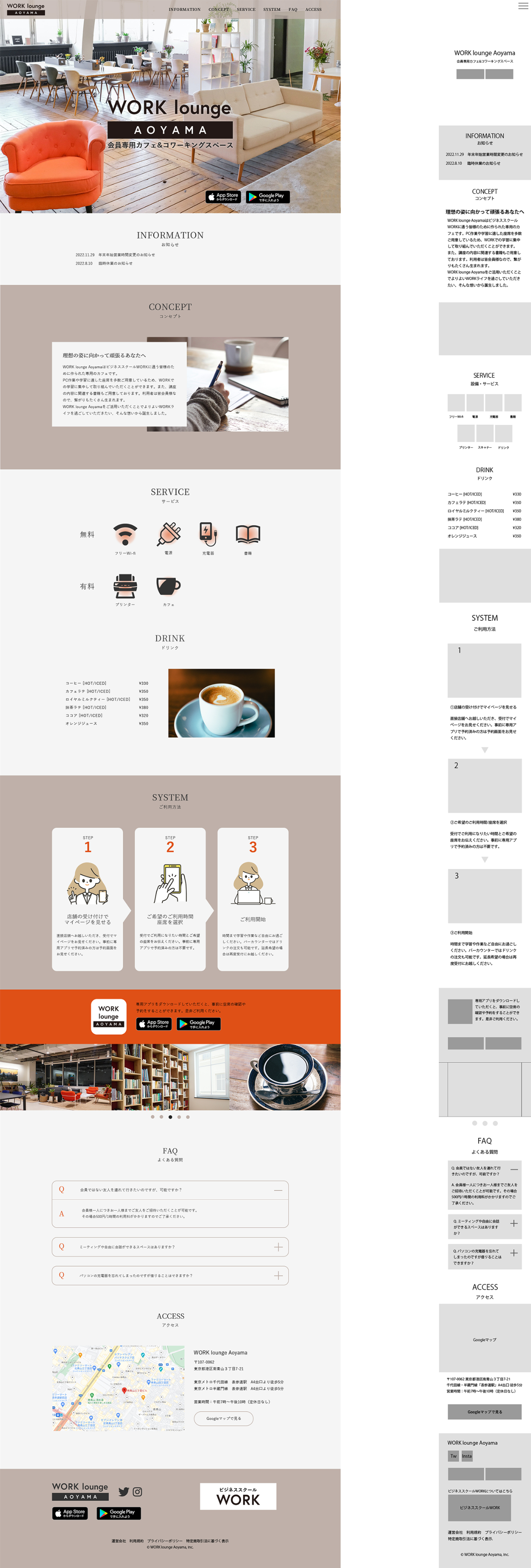 会員様限定のカフェ&コワーキングスペースをオープンすることとなったため、 利用方法やアクセス情報を載せたWebサイトを制作したい 。