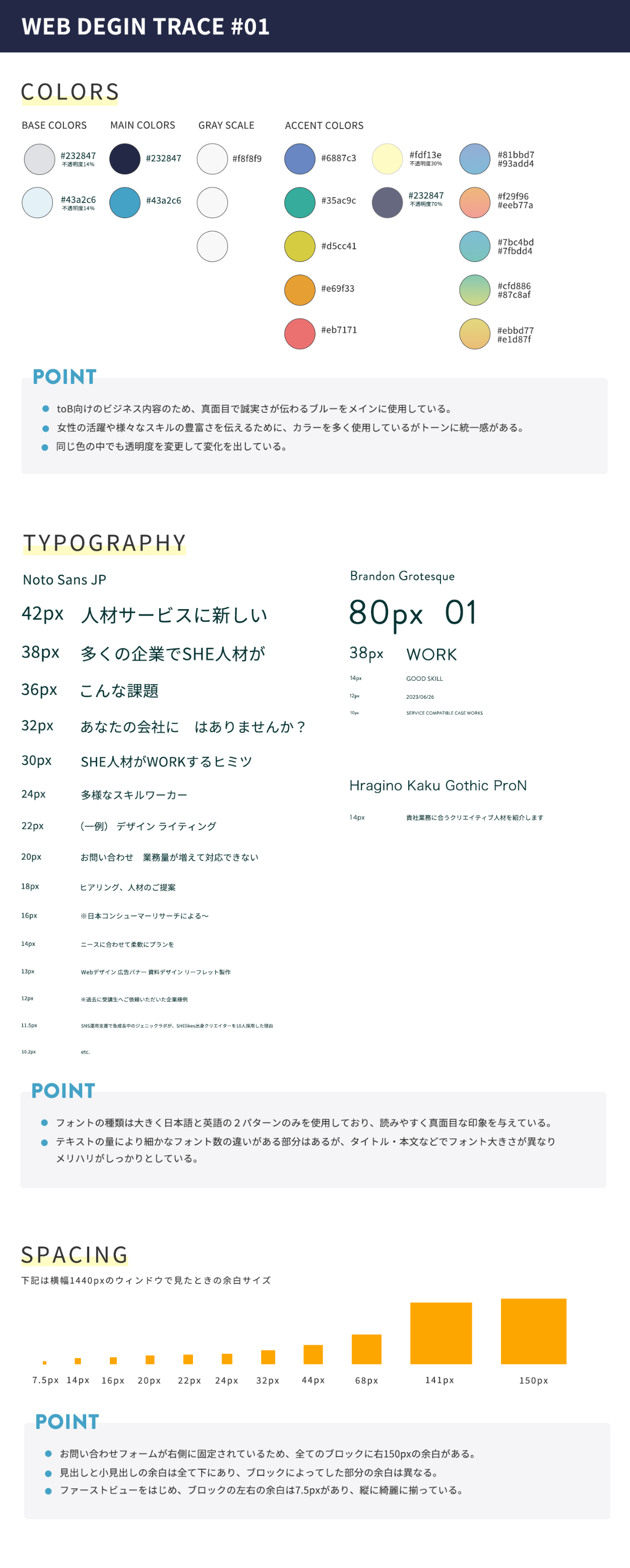 今回のWebページトレースでは、特にWebサイトの色の使用方法についてとても学びがありました。多くの色を使用している印象を受けましたが、検証ツールを使用してよく確認してみると、同じ色を使用し、透明度を変更することで違う色にみせている部分がわかりました。コーディングのカラー指示は、カラーコードのみだと思っていましたが、透明度の指定方法が分かるようになりました。
