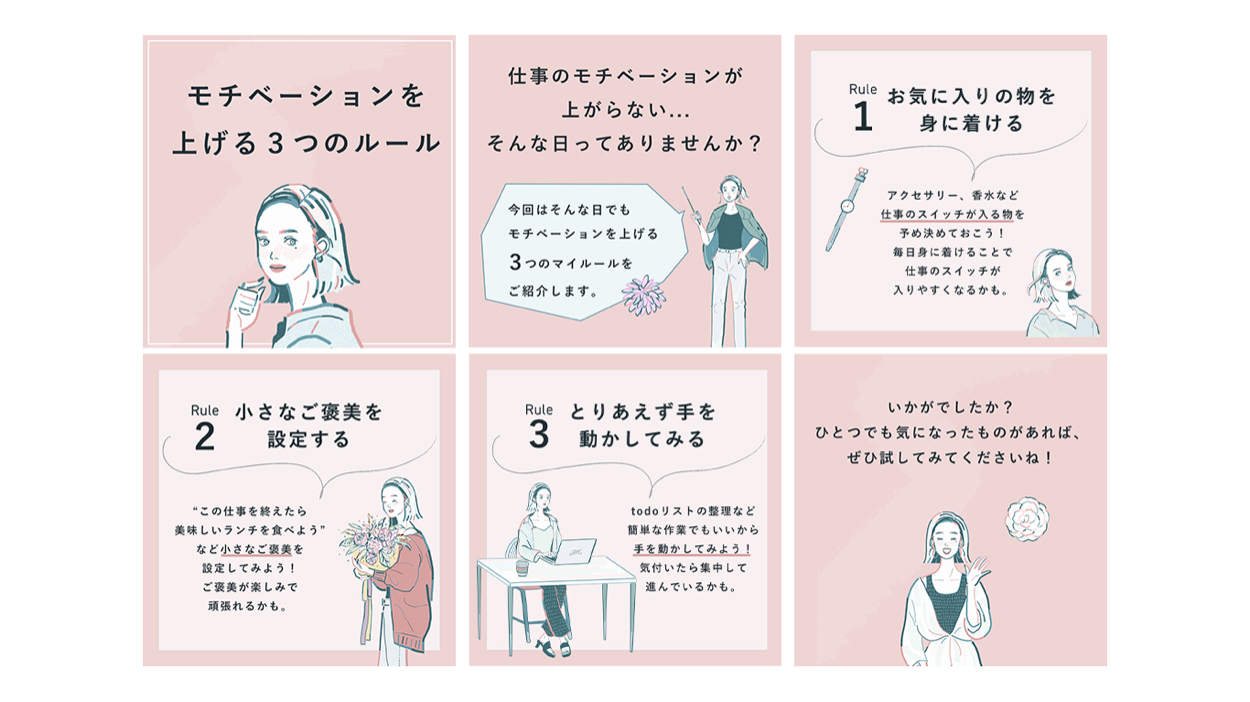 お仕事でモチベーションが上がらない時の3つのマイルールについてのバナーを作成しました。
